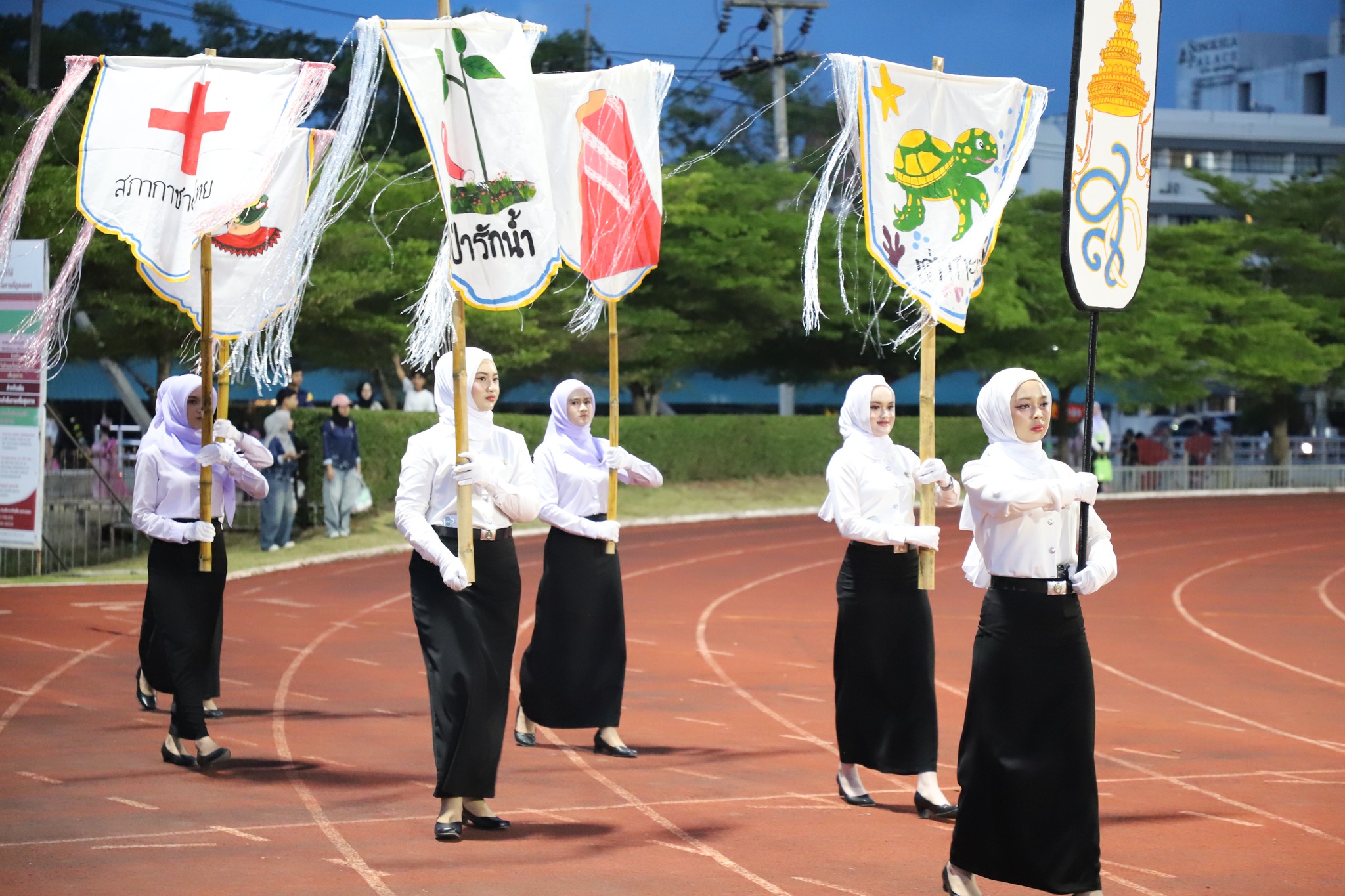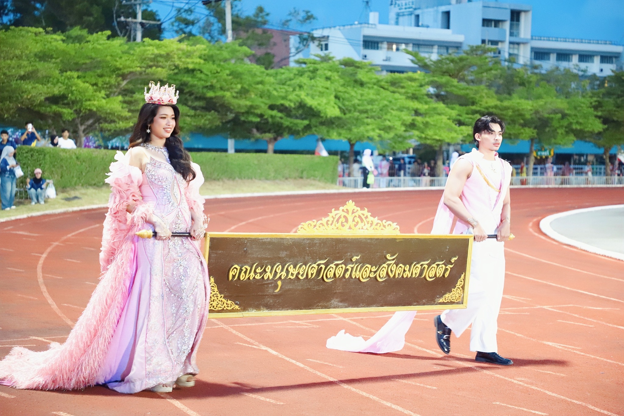คณะมนุษยศาสตร์และสังคมศาสตร์ เข้าร่วมงาน ปาริฉัตรเกมส์ ระหว่างวันที่ 1116 กุมภาพันธ์ 2569 โดยจัดขบวนพาเหรดภายใต้แนวคิด วัฒนธรรมแห่งลังกาสุกะ พร้อมขบวน ประเพณีแห่ขันหมาก ซึ่งนำเสนอวิถีชีวิตและอัตลักษณ์ของพี่น้องมุสลิมในพื้นที่สามจังหวัดชายแดนใต้การดำเนินกิจกรรมได้รับการให้แนวคิด คำปรึกษา และการอำนวยการด้านการจัดเตรียมงานจากคณบดี ผศ.ดร.รัชชพงษ์ ชัชวาลย์ ร่วมด้วยรองคณบดีฝ่ายพัฒนานักศึกษาและศิษย์เก่าสัมพันธ์ อ.ดร.โชติกา รติชลิยกุล ซึ่งดูแลและประสานการทำงานของนักศึกษาอย่างใกล้ชิด ขณะที่คณะผู้บริหารและคณาจารย์ร่วมเข้าชมการแข่งขันและส่งกำลังใจตลอดกิจกรรม